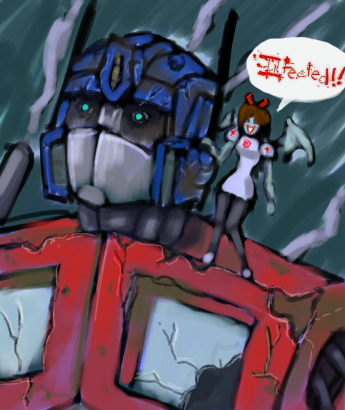 I have a shirt from hot topic that says I <3 optimus prime. XD [link] straya has a bumper sticker that says "My giant robot stepped on your honor student." XD