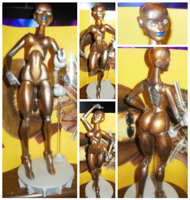 ahh~ I sculpted the dolls from scratch, there's some pictures of her in paperclay in my scraps folder. :3 I then made molds and cast each doll from resin, the color is in the resin except for Nova. Nova's resin is black, but the molds were dusted with metallic powder to give her that metal finish.