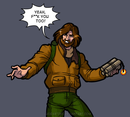 haha almost like snake plisken from escape for LA. lol. very awesome piece here.