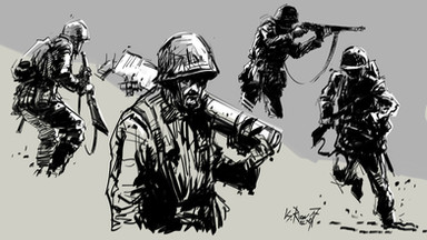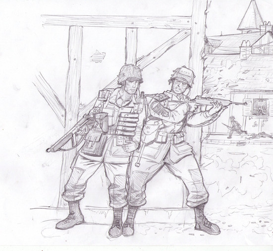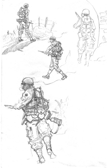 Such a nice piece. Lovin' the movement. That first panel kills me how you sillouetted everyone, but at the same time they have their own sillouette so they are readable. Very nice. Lovin' it.