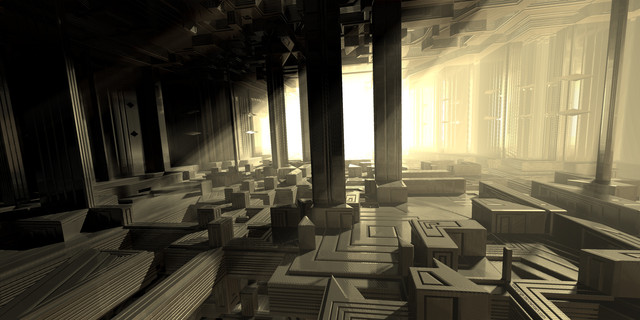 Fractal digital work done with Mandelbulber 2.28.Mandelbulber 2.28. T>Box Tiling V2, Mandalay Box V2 formula. OpenCL MC.