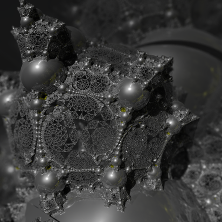 An image created with Mandelbulb3D.amazingIFS, HelixIFS and NewMenger2IFS.