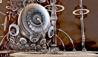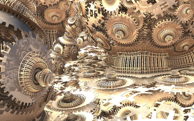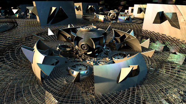Some alien creatures in an alien mechanical planet perhapsMandelbulb 3D 189. _AmazingBoxSSE2, OctahedronIFS and Folding Int Pow.