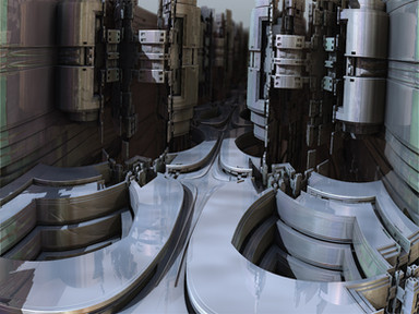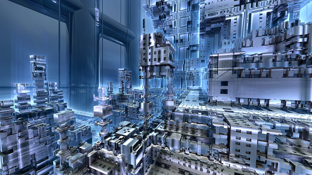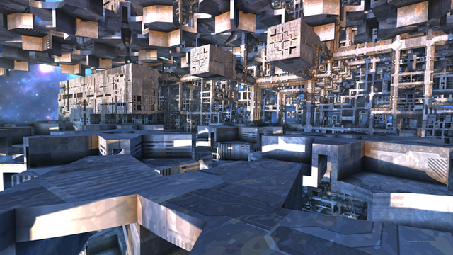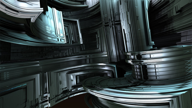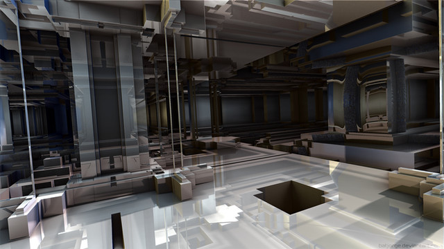 Some futuristic labsMandelbulb 3D 189. _reciprocalY3b and SierpHilbert