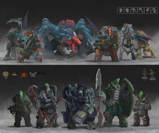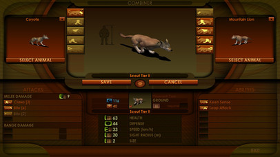The Commando Line is my best set of creatures yet. The first unit in the series is a Wolverine with the head and tail of a chameleon, giving it a combination of stealth, range, and melee power while balancing it with defense, health, and vision. All Commandos have the same chameleon parts, but future variants sacrifice melee power and lose the frenzy ability. No known aerial Commandos exist at the present time.Scout Class creatures:
