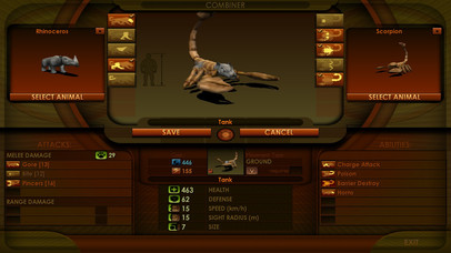 The Marine Tank, like the Marine Scouts, have the claws and torso of a lobster. But like the Main tank variant, it also has the head and hind legs of a Rhinoceros, though with the addition of the frontal legs. The Marine Tank has less hit points than its scorpion counterpart, but has more defense and somewhat greater speed. They're still expensive and vulnerable to aerial attack, but with enough numbers, they can devastate a small mining field within minutes if left unhindered. Marine Tanks are the only Tanks with regenerative abilities.Scout Class creatures: