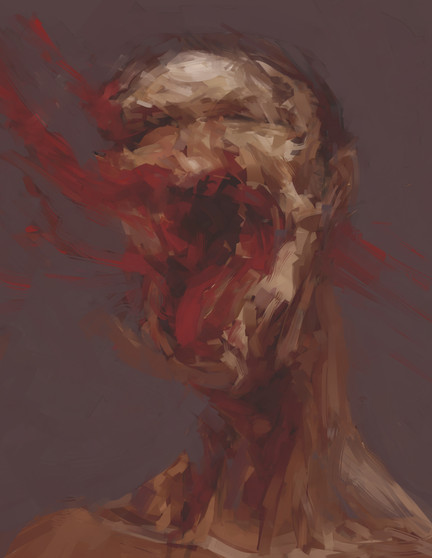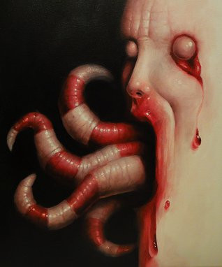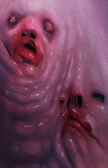 those light dots on meat, are great, they give so much gore flesh touch to the painting, i almost hear how its splashing