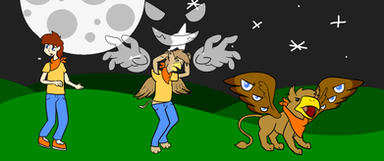 B-b-bro *I said before coughing as my neck hurt and she said as i felt something hard forming under my feet*
