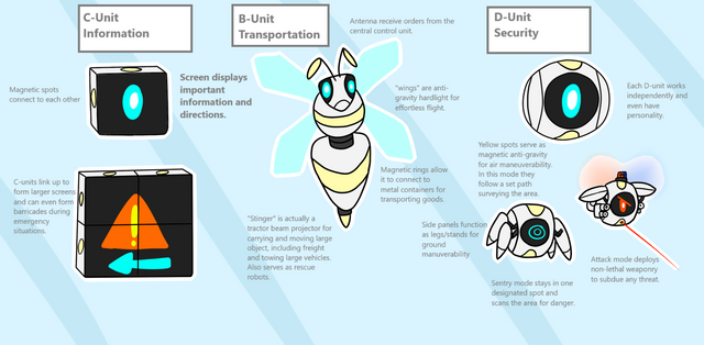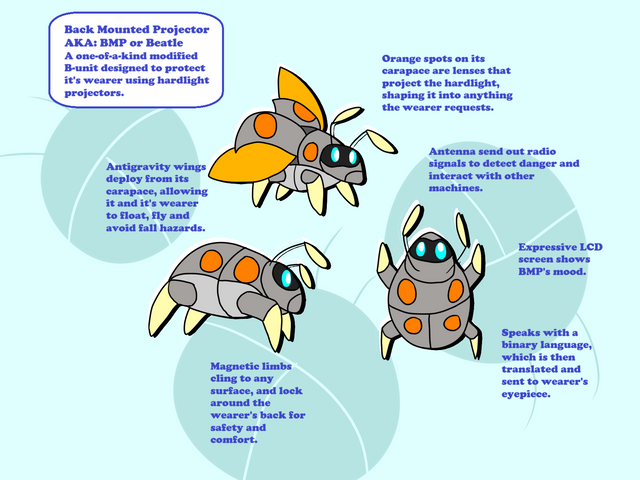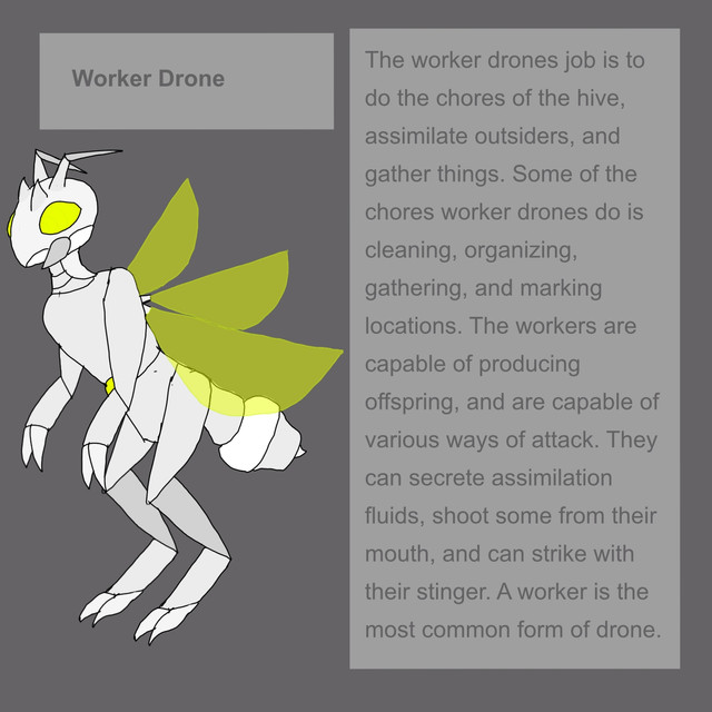 Just a visual reference and descriptions of my drones and their various abilities. I made them up as a means of transformation and now I really like them. Though number 02 seems to have a habit of malfunctioning...Related content