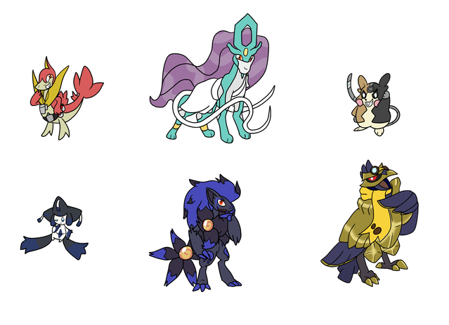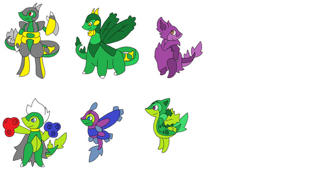 A bunch of my own forms I havent drawn yet.Top row: Snivy, Latios, Zoroark, Helioptile