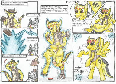 I find a spell book that im skeptical about, and end up turning myself into a "big brother" pony.Related content