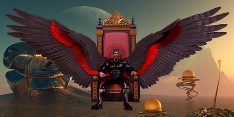 *accepts the pizza, allow the mortal to touch his wings as reward.*