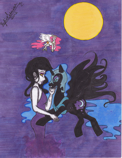 Nightmare Moon and King unicorn SombraDrawing a long time waiting for this to be painted and today I finished, painted the three days