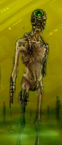 definitely a morbid look into what early cyborgs might look like, as in the ones created in labs from recent cadavers and the like. Creepy and realistic, liking the boniness.