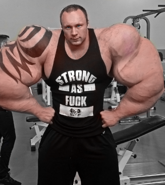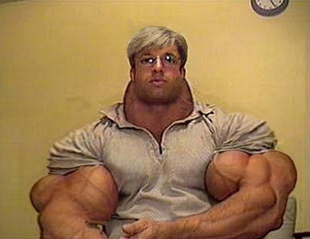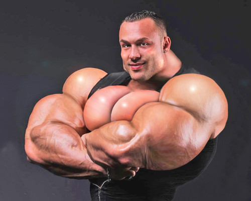 Tell him he's too small, and that if he wants to reach his goal of becoming immobile, he's gotta juice twice a day, every day, and have a tube down his throat all night with liquid food pumping into him, so while he's sleeping and his muscles a repairing from his 10 hour daily workouts, he's getting enough food to pack on pounds of roided up muscle each day!