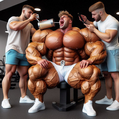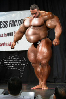 "Coach, can I have more site injections between prejudging and evening show? I can win this show with heavy duty injections in my arms, pecs, thighs and glutes right now! Yeah coach, ROID ME UP and watch me expand!"