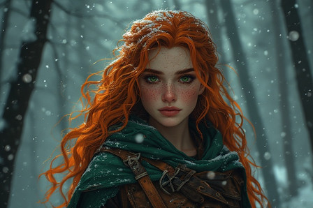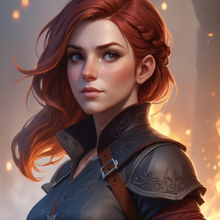 #adventurer #ai #dungeonsanddragons #fantasyart #fantasycharacter #dungeonsanddragonscharacter #adventurerwoman #aigeneratedart #generatedbyai #createdfordungeonsanddragons #characterart #inthewoods #redhead #fantasysetting