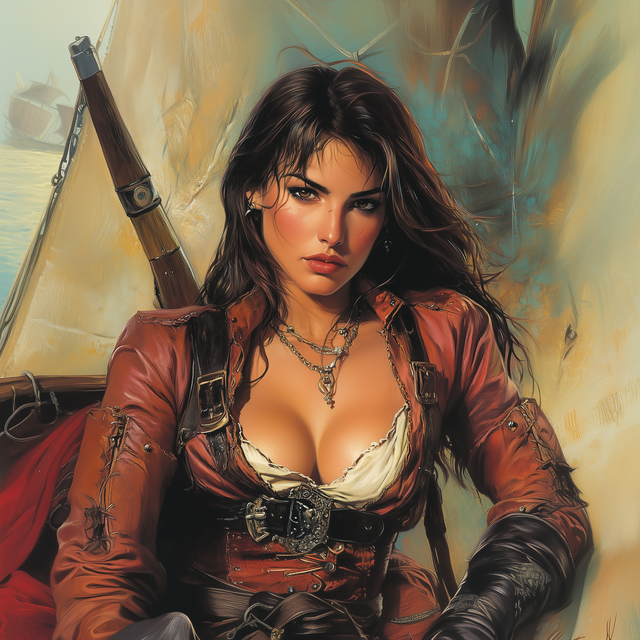 #ai #fantasy #privateer #fantasycharacterart #adventuringwoman #adventurer #characterart #fantasyart #pirategirl #piratewoman #aigeneratedart #generatedbyai #createdfordungeonsanddragons