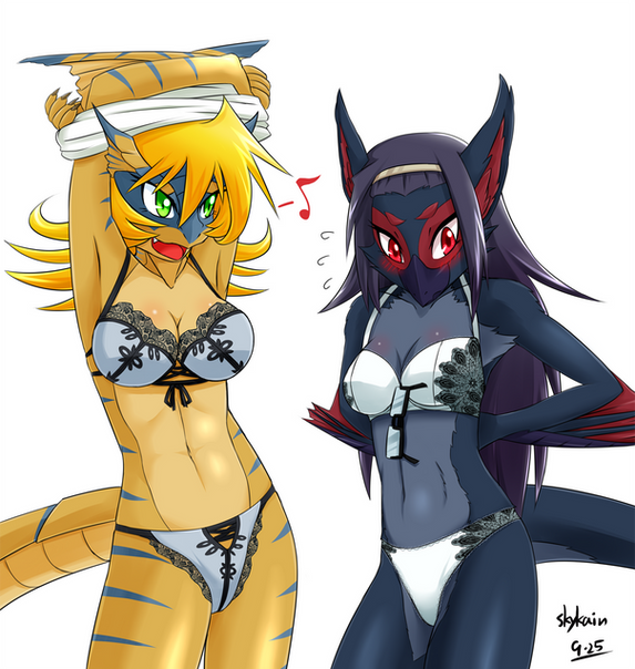 I feel like Renamon's doing an "eyes up here" gesture. By the way are they wearing granny panties lol