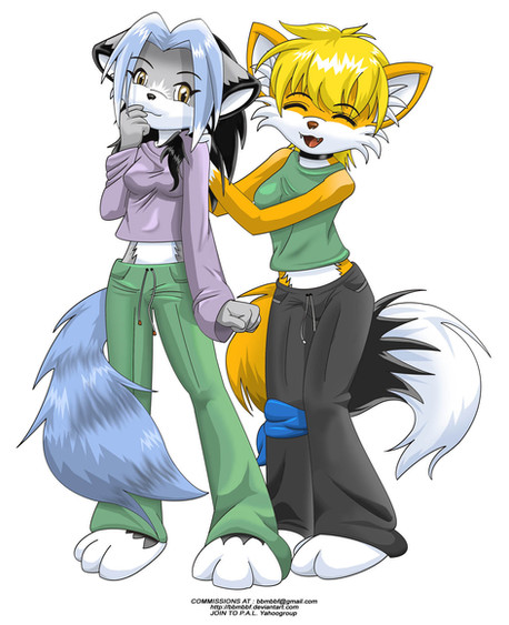 omg i cant wait to show this too my gf! you are sooo good with the drawing! the poses and the clothes and interaction of characters and expressions and the linework - i love the tails and hair so much! I really really like how you've drawn Candy! the way you drew her swishy tail omg XD I'm gonna work on another bbmbbf fursona pic when i finish my exams! thanks again i LOVE IT!
