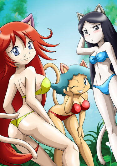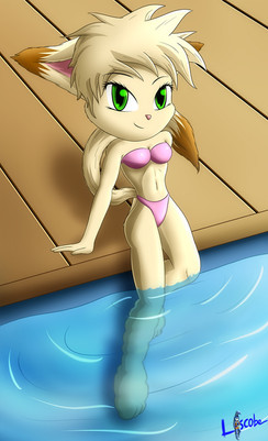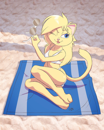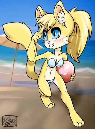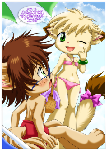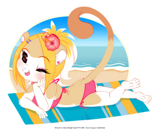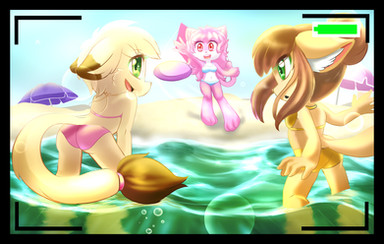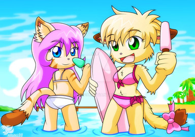 Both characters look very nice and cute relaxing on the beach together for this picture you've done.