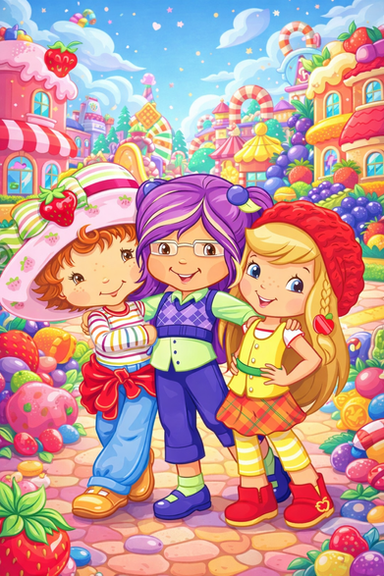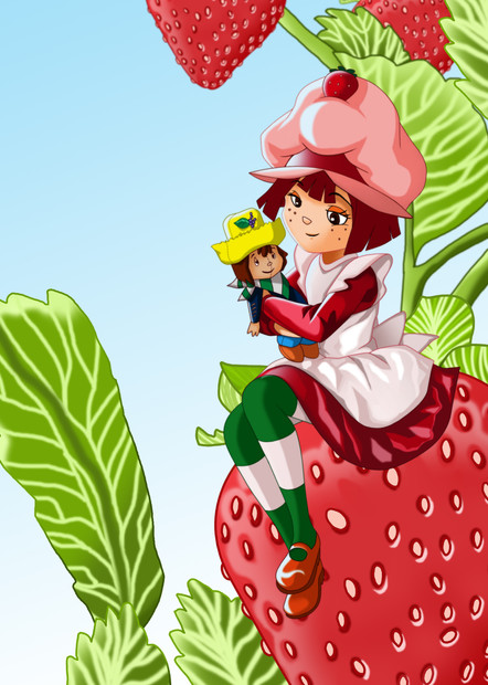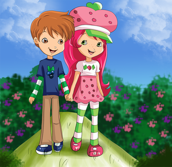 It's a beautiful scene, so playful and fun. (Even better that it's the DiC version. ) It's clear the friendship they share is sweeter than that treat in her hand or any other. Great smiles, terrific pose, and lovely theme. Nice Strawberryland background too.