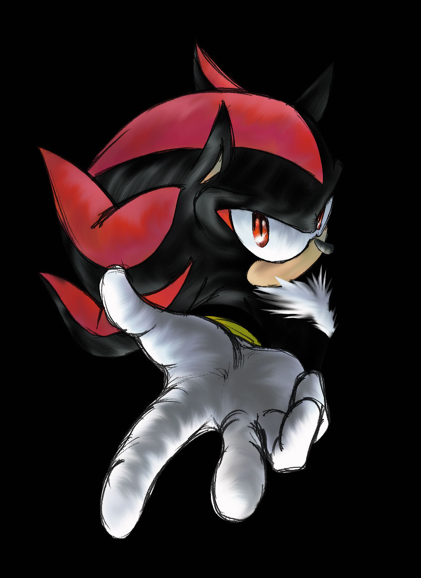 I can't tell if Shadow's smiling in that picture or not, but my point being, I love those pictures where Shadow has a small, friendly smile on his face, which makes him look cute.