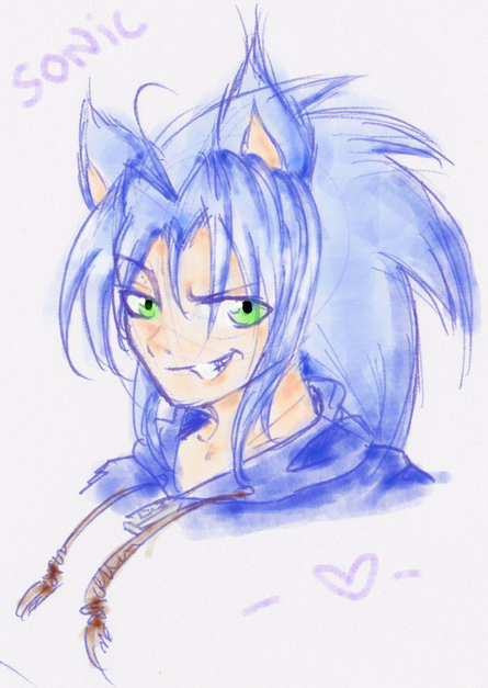 I like this one more than Sonic 1. He's more cheerful and looks ready to explore the world around him ... again. Also, love the coloring and drawing style. ^^