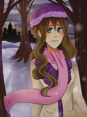 Pretty!! I like the winter-cape. And the outfit looks great!! (Plus I completely agree with it! I bundle up that much too when I go outside in the winter.) Wonderful work!