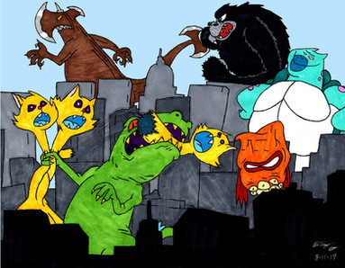 The Kanker Sisters are Ghidorah. Jonny is Baragon and Plank is himself.