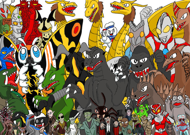 #destroy_all_monsters #ededdneddy #ghidorah #godzilla #kankersisters #crossoverfanart