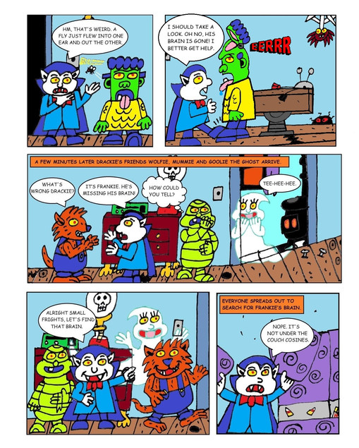 This is a picture I drew of the characters from Hardee’s Small Frights toy line.Toys of Drackie, Frankie, Wolfie and Mummie, came in the Hardee’s Funmeal (kid’s meal)