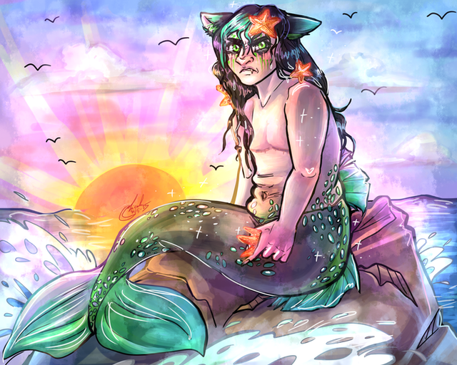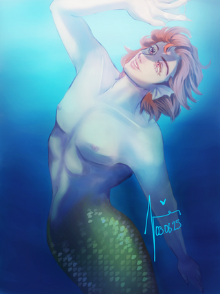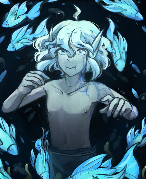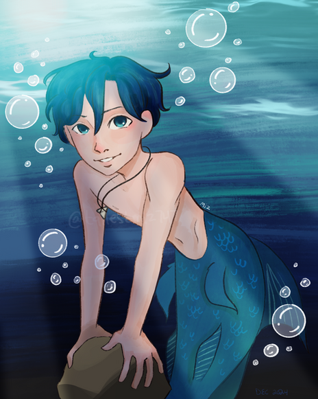 #digitalart #originalcharacter #digitalpainting #mermaid #animeboy #goldenfish #pisces #zodiacsigns #bluehairboy #piscesszodiacsign