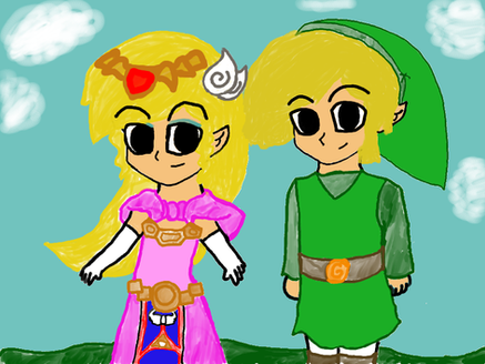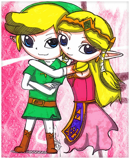 I have mixed feelings about this one. I really copped out on Zelda's dress (seriously, no way in HELL was I going to draw all that stuff on her TP dress - no way!) Peach looks a little blah, and I hate the background (unless I draw an actual scene it looks like ass)But on the other hand... I like the concept overall.