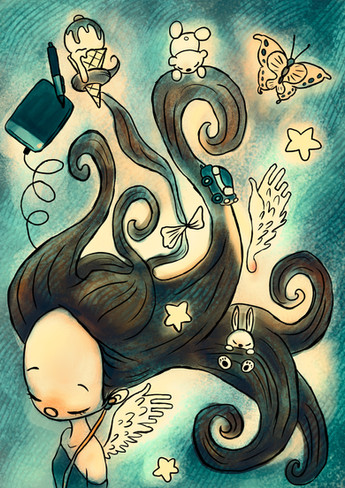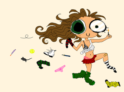 "Wut something in my hair? Where?"I was catching a repeat of "Shear Genius" and the challenge was styling with women's hair that were down to their tushes without cutting it. And while my hair is only shoulder length I occasionally get food or something in it. So this is a play on that. I actually had more stuff in stuck in her hair but I felt it was getting too busy so I erased some things.