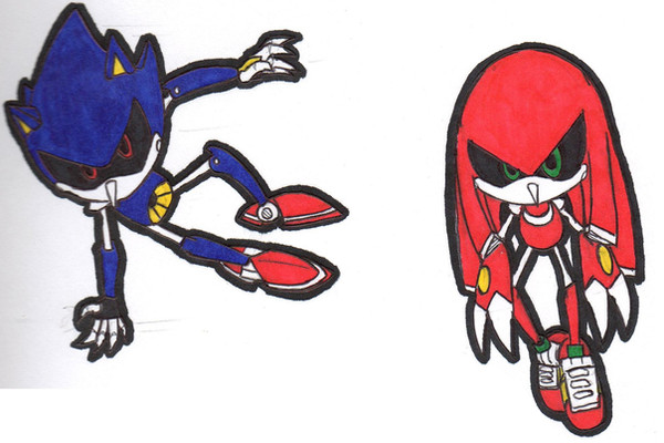 (it seems that all the grey areas on Metal Sonic were too light to show up when I scanned it. I'm still learning how to use my scanner, so maybe I'll be able to fix it sometime. Though he doesn't look bad, evil but not bad.)