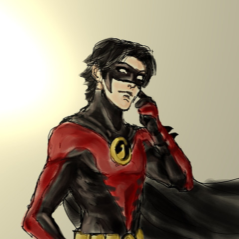 Hmm I love the red tips! I could work with that. Tho the red tips would have to be something he does for being Robin, because having a distinct hair style like that would make him noticable to people he goes to school with or anyone who sees him in general. It's why Bruce and all the others never really done anything drastic about their looks. Why Bruce Wayne is always clean shaven and why Batman can be scruffy at times... You see?