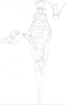 a lovely damsel in tight webbing, she looks very nice, though it's a shame she's not gagged. nice work tho