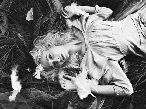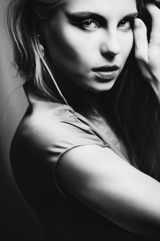 Beautiful - love the proud bird-like pose of the model and the gorgeous black and white tones