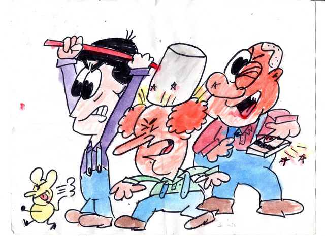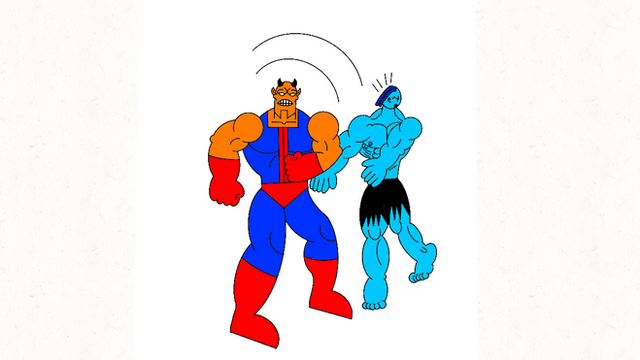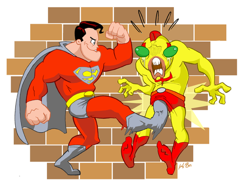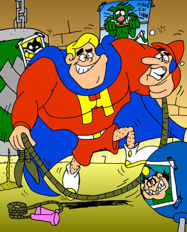 #big #clown #damage #drawing #fanart #fight #huge #large #mashup #muscle #musclegrowth #pen #pervert #politician #punishment #ralphbakshi #superhero #whatacartoon #coloredpncil #malcomandmelvin