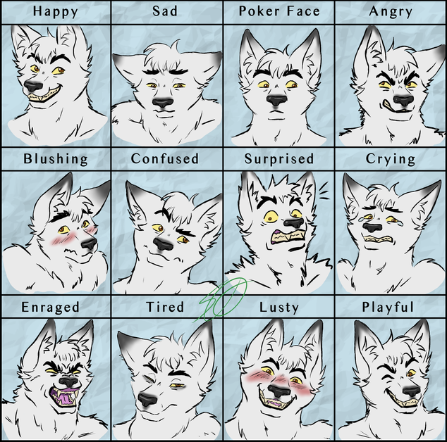 I love the way you draw expressions! My favorite is definitely Impatient, but I really like Smiling and Sad as well. They have perfect eyes, mouth, and ears. All the right ingredients for amazing expressions~ XD