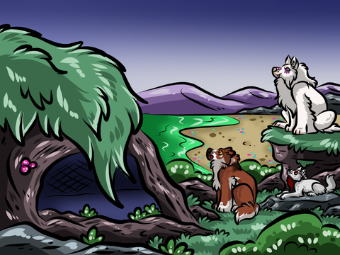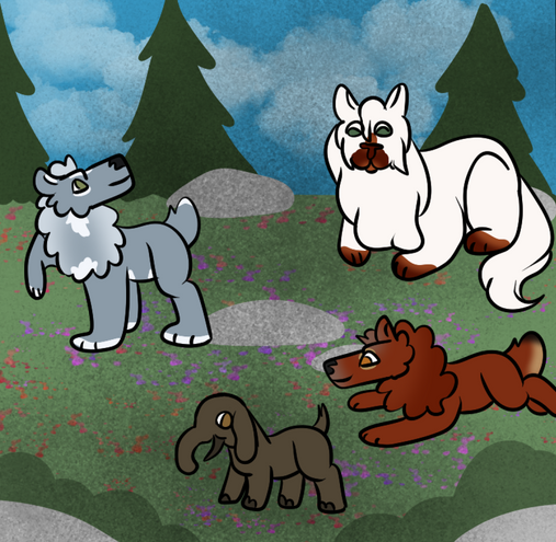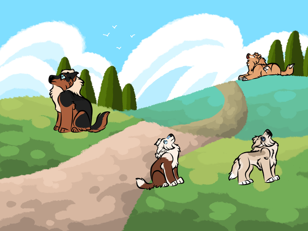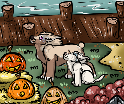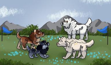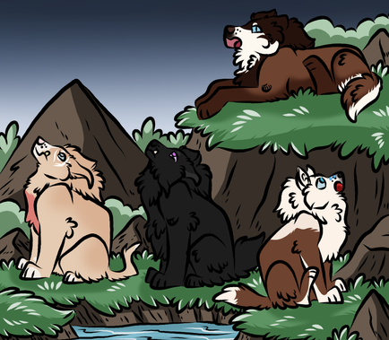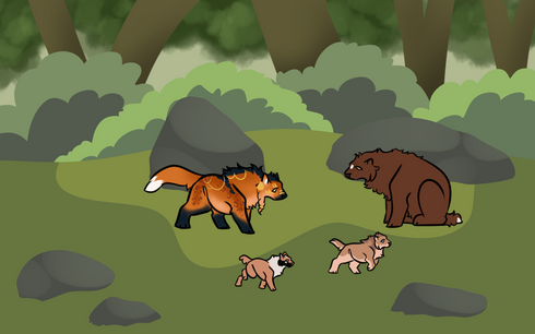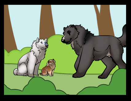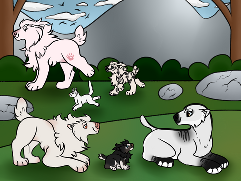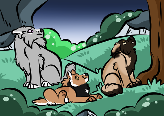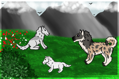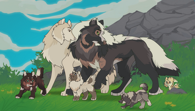 Aster and Wolf on their first adventure with their pups; not a wise choice on either's part of course, they've figured that out too late.For myself and Itachislilgirl