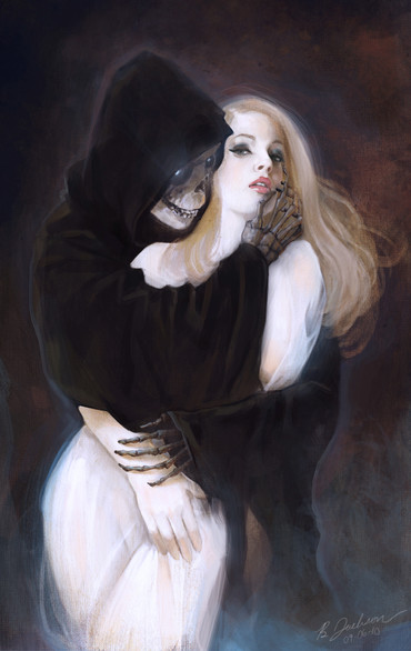 Her hair reminds me of smoke I love it. Gives her a very... I don't know ethereal feeling to her. But where are you going to put your name?