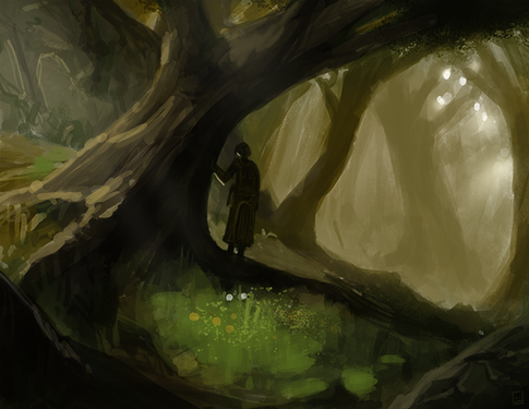 And it demands your attention, so you venture further down, seeing the girl at the bottom. Which intensifies the magic and fantasy of the painting.