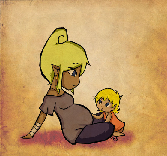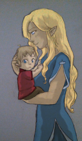 They snuggled and slept through the whole morning and afternoon. I'll probably draw her bringing the baby up to the deck for the first time without the danger.