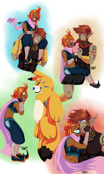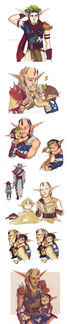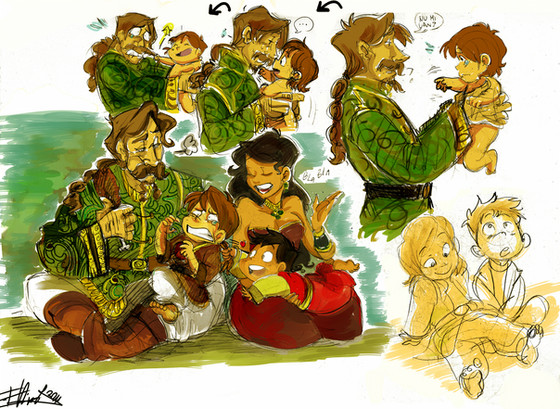 A couple of Fable 3 sketches that I did over time.There's Ben flirting with Page, Irene (my hero) and Ben sharing some quality time together, Page in a scarf, and again, only chibi, and dozing off onto Ben who doesn't seem to mind. Then there's two sketches of Walter that I did, and my favorite one: Walter comforting little Irene. ~