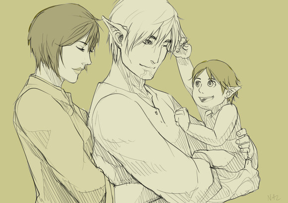 Awwww this is so cute X3 But do tell, why is it one of the children looks like a Garth/Reaver baby? xDDD Maybe I'm just imagining it though haha xD