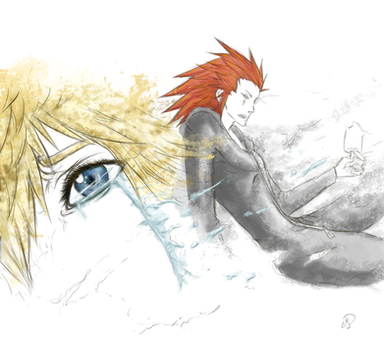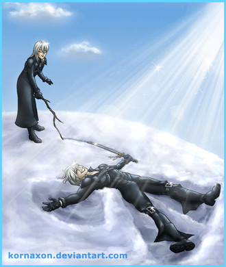 Anyway, in the picture, Vexen found Marluxia under the snow. It is not that close to Springtime yet, but Seeing Vexen's face just makes Markuxia want to... bloom a heart-shaped flower?
