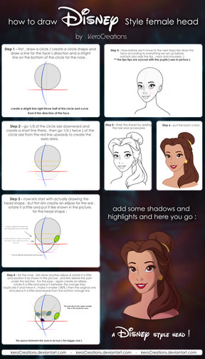 Do pardon me if I didn't get everything right. I don't have much experience of drawing Belle. Anyway, just like I said in my Ariel tutorial, just apply these guide lines to your style and PRACTISE, you'll be be drawing her perfectly later.If you have any questions, feel free to ask!