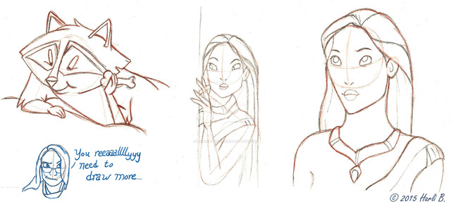 This one I made fairly quick. Drawing Pocahontas is very much about studying her. She's got some unique features and it takes some time to get it right.More tutorials: